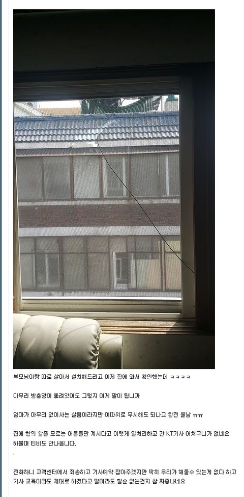 방충망 찢고 선 연결한 클라쓰..