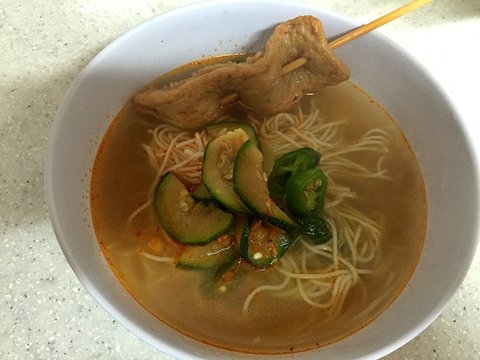 4.남은 어묵육수에 호박볶음올리고 소면넣어 국수