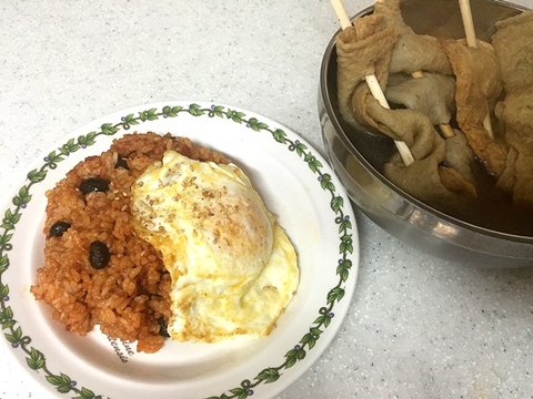 8.위에 고추장으로 밥을볶고 계란후라이를 뙇!