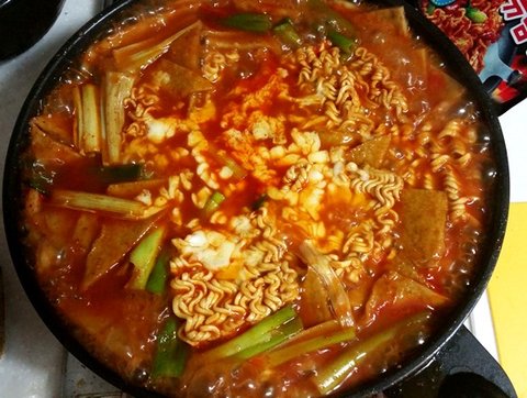 13.매운 치즈 라볶이(불닭볶음면 소스를 반을투척!)