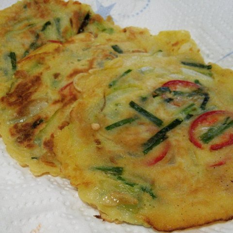 이건 집에 실파랑 적고추가 남아서 만든 파전인데요