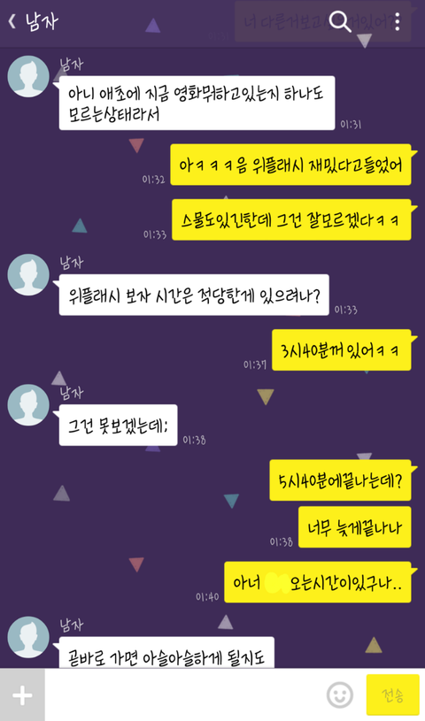 19여자구요 학원친구좋아하게됐는데 얼마전에 제가 번호물어서 당일날 좀 오래 카톡했었구요 그리고 일주일뒤에 제가 영화보자 그랬는데 보시다시피 약속잡았습니당 얘도 저한테 관심있는걸까요?