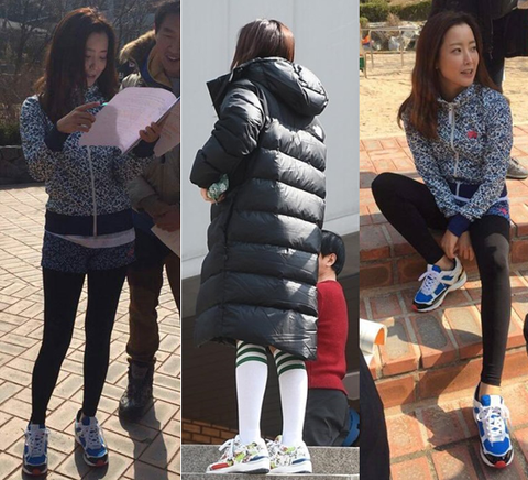 핑크 헤븐 운동화로 8등신 옆선 비율 보여줬음...
