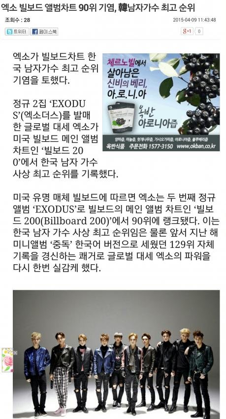 엑부심 하나 더 부리자면 빌보드 세계차트 90위임! ㅜㅜ 이게 지금까지 언플해왔던 빌보드 내 k 차트 순위가 아니라 순수 빌보그차트에서 90위 ㅜㅜ!! 그리고 막내 세훈아 생일 축하해 ♡ 엑소라서 너무너무 고맙고 엑소 사랑하자 ♡ 엑소는 건재합니다