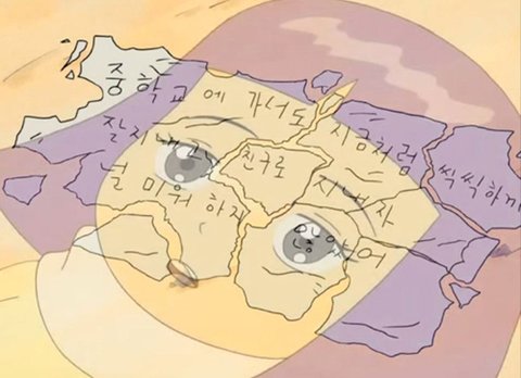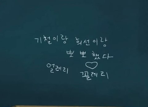 다음날, 칠판에 기철이와 희선이가 뽀뽀했다는게 써있음