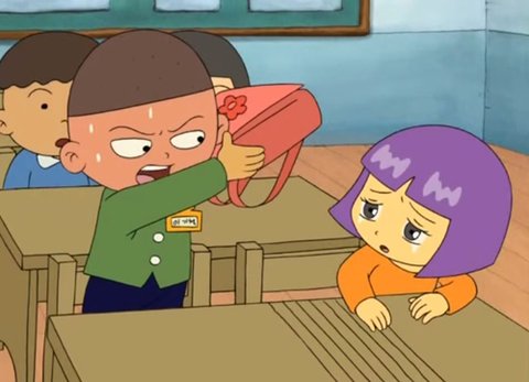 기철 : 이리 내! 니까짓거 아파서 죽어버리지. 학교에 왜 왔어?!