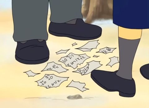 기철이는 부끄러운 마음에 희선이가 준 쪽지를 찢어버림