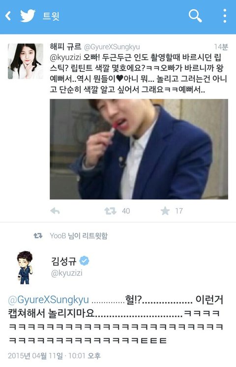 하루종일 트윗에선 성규 립스틱 얘기ㅋ