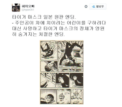전설의 만화 타이거마스크에서 한국판&일본판 앤딩...