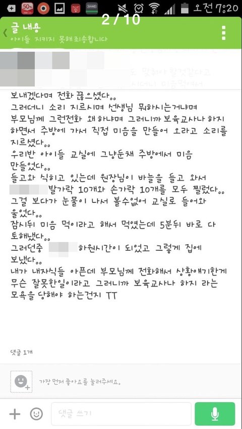 선생님의 용감한 행동으로 이어졌으나 원장의 인맥동원으로 인해 이상한 방향으로 간다합니다