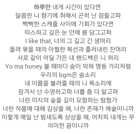 이거 듣자마자 아 내 취향 이러면서 앓았던 기억이 난다 개인적으로 이 가사를 제일 좋아함 시적이라서 더 좋아 ㅠㅠㅠㅠㅠ