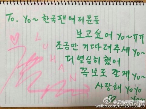 너네 땜에 내가 루한 탈퇴후 첨으로 다시 웨이보 접속했다. 인간들아. 싸인도 루한 싸인 흉내낸거고