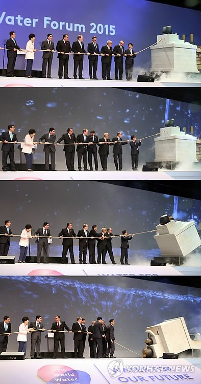 물 포럼 개막식서 이벤트로 줄다리기했는데 구조물이 넘어짐