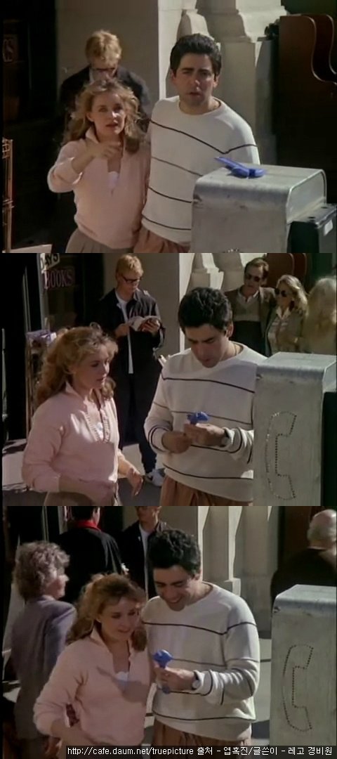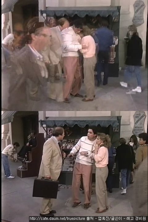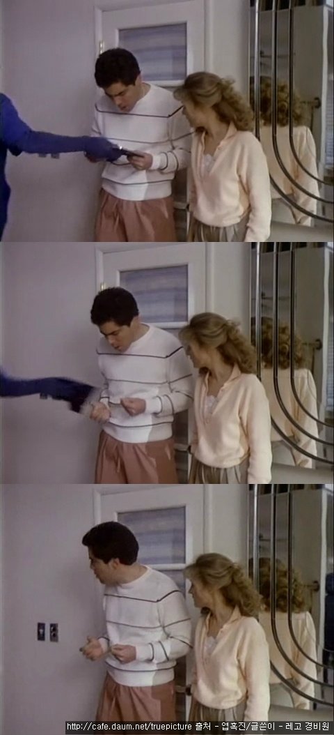 지나가던 회사원이 마침 거기 서 있던 부부와 부딪힙니다.
