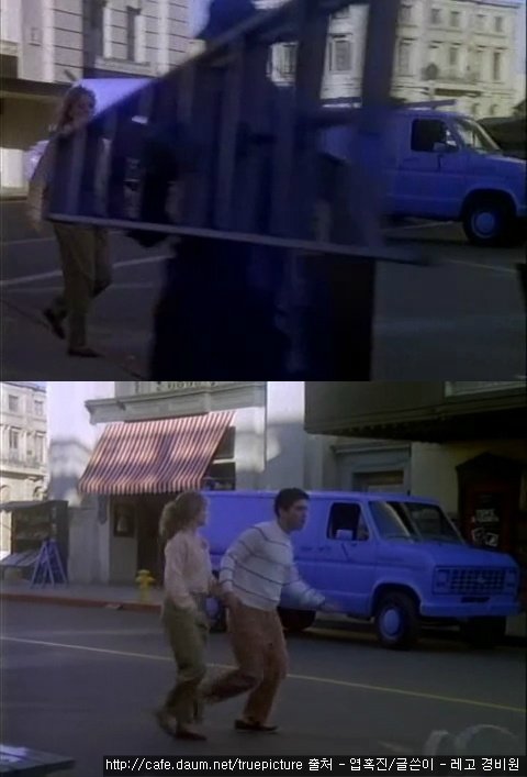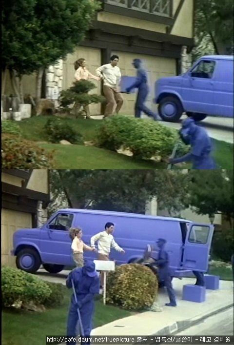 거리엔 왜인지 아~무도 없고 다니는 차라곤 오직 파란색 밴 뿐!