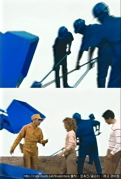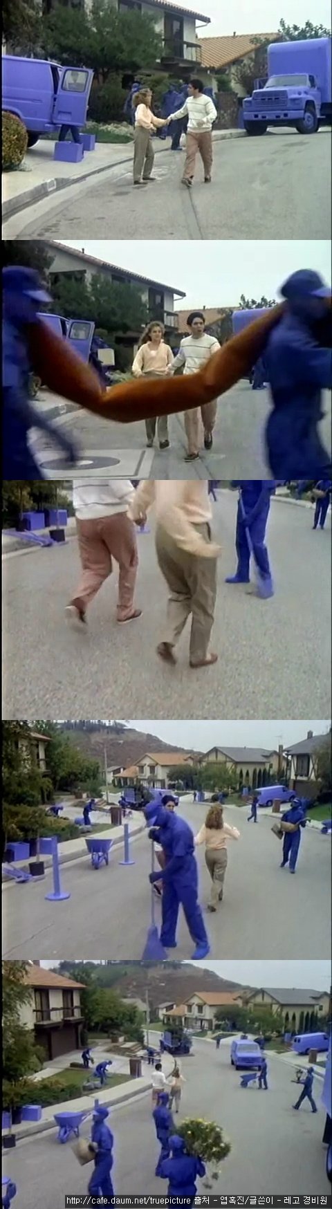 그런데 파란 인부들이 손대는 곳은 비단 부부의 집만이 아니라