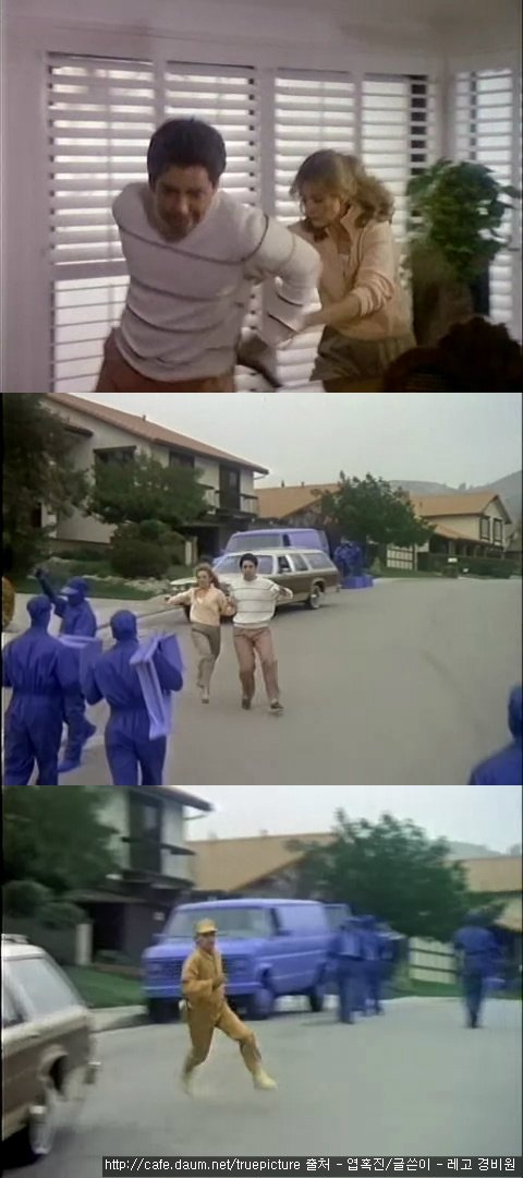 집 밖으로 도망치는 부부!