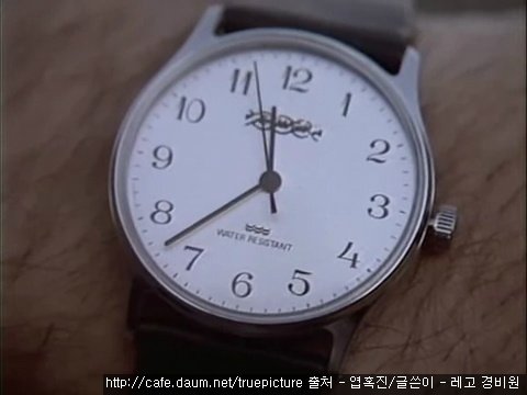 이상하게도 손목시계는 7시 5분을 가리키며,