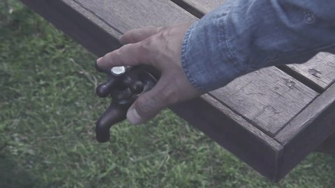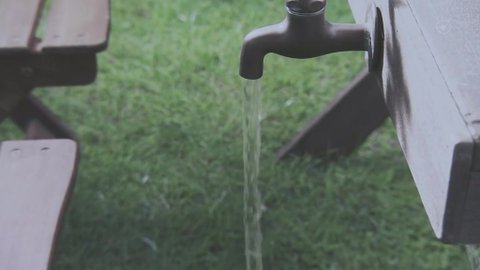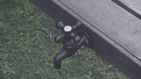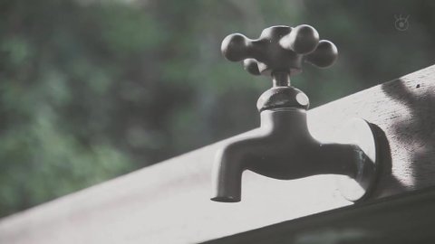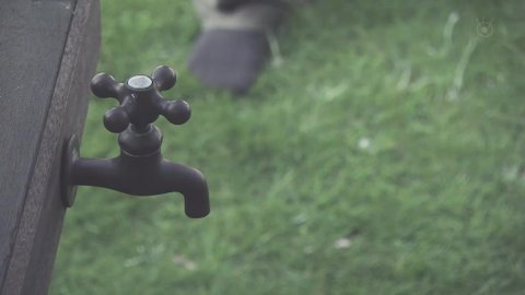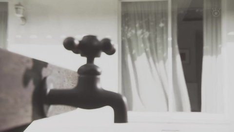 궁금증 돋은 꼬맹이는 수도꼭지를 돌려봄