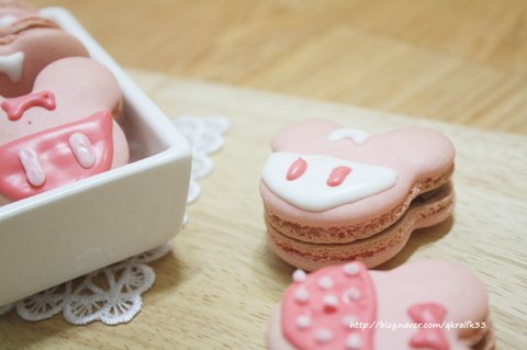 발렌타인데이 기념으로 만들어본 하트마카롱이에요
