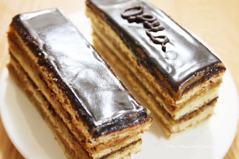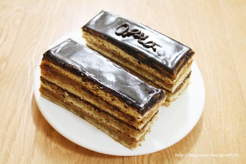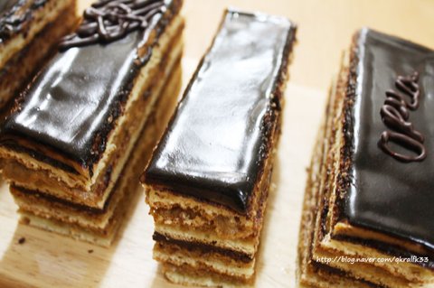 오페라가 무슨 케익이냐면, 커피맛이 나는 초콜릿 케이크에요.