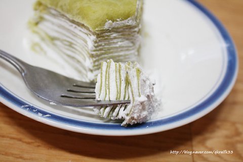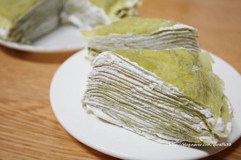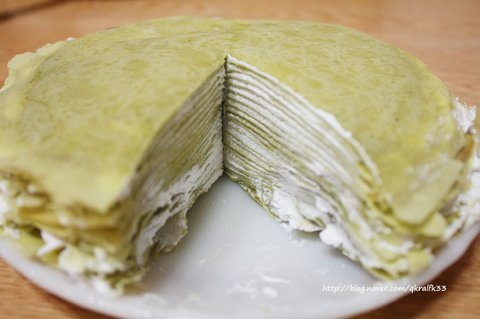 녹차 크레이프 케이크ㅎㅎ크레이프에 녹차가루를 넣었어요
