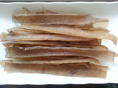 이거를 먹을때는 뜨거운 물에 잠시 돼지껍데기를 불려주고