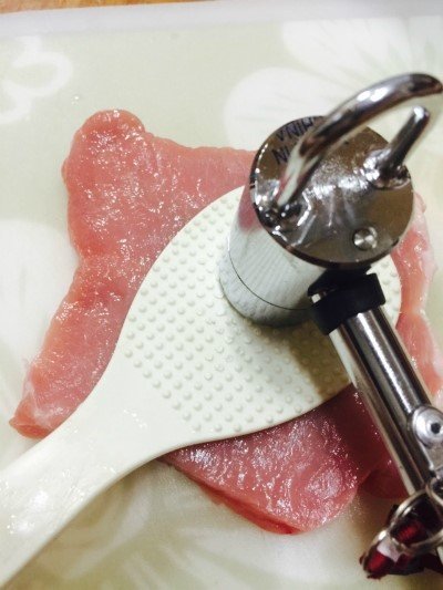 연육망치를 어디다 뒀는지 찾다찾다 못찾아서, 하는수 없이 주걱과 캠핑용 팩망치로 두들겼는데...