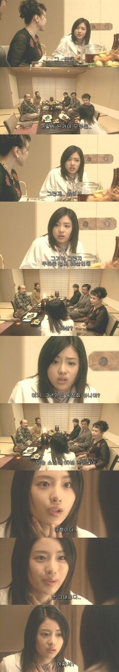 거짓말처럼 아까 그 중후한 모습의 30년 후의 친구들이 하루카를 기다리고 있습니다.