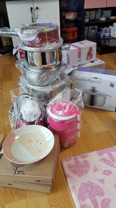 그 얘기 들으시더니 창고방에 있던 새 냄비들이며 반찬통까지 싹 꺼내주시더라구요.