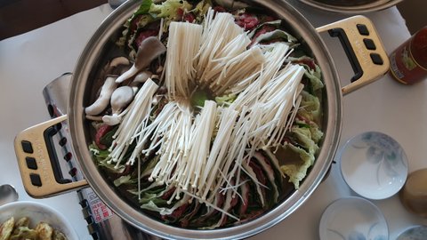 아버님께서 샤브샤브 먹자고 하시더니 저렇게 '밀푀유나베' 라는 걸 만들어 놓으셨더라구요~ (전 그냥 샤브샤브도 못 만들어요;;;)