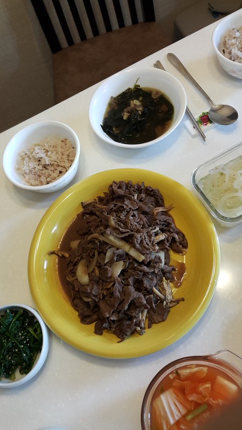 친정 가서 자던 날, 아침 7시에 일어나서 끓인 미역국과 불고기예요^^!