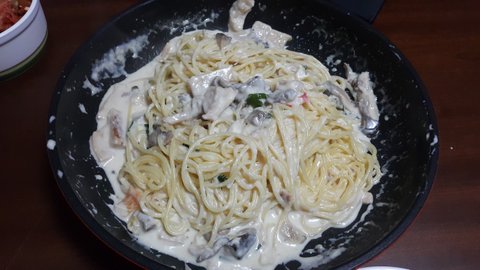 아버님이 저녁 안 먹었지? 하시며 만들어주신 크림스파게티...(보고있나 신랑..)