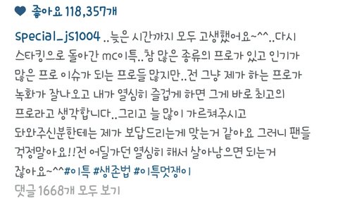 엠씨, 슈퍼주니어 리더, 예능, 가수 등 많은 수식어가 떠오를 것 입니다 그만큼의 노력이 필요한 수식어들이죠