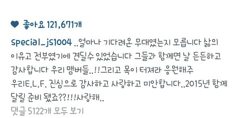 2014년은 이특에게는 많이 힘들었고, 아팠던 해 였습니다 굳이 언급은 하지 않으나 견더준 오빠 너무 고마워요 그리고 미안해요