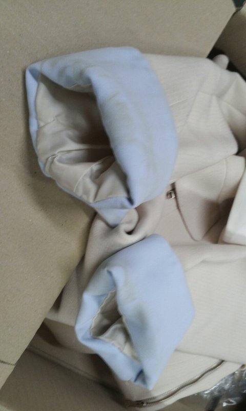 설레이는 마음으로 박스개봉,비닐제거 하여 보았는데 크림색자켓에 거뭇거뭇 뭔가 묻어있더라구요