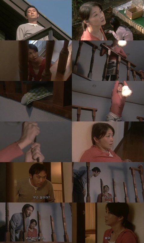남편을 따라 올라간 여자는 난간에서 추락할 뻔 합니다.