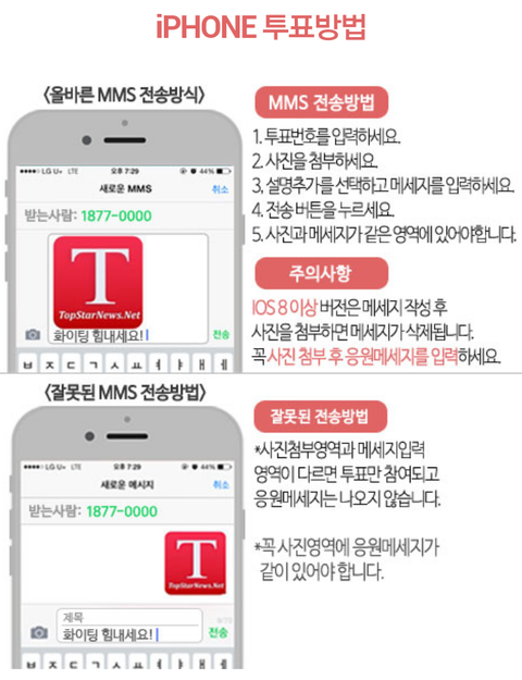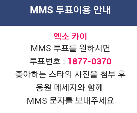 -문자투표방법 : 1877-0370 카이사진 첨부해서 응원메세지 보내기, 문자 50건까지 가능