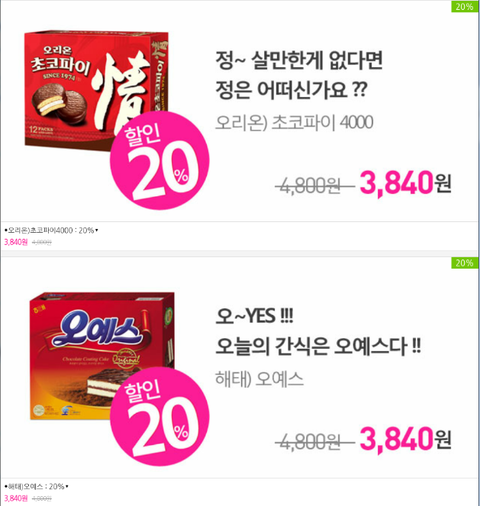 제가 좋아하는 초코파이가 ㅋㅋㅋ 20%세일 이라니 ㅋㅋㅋ