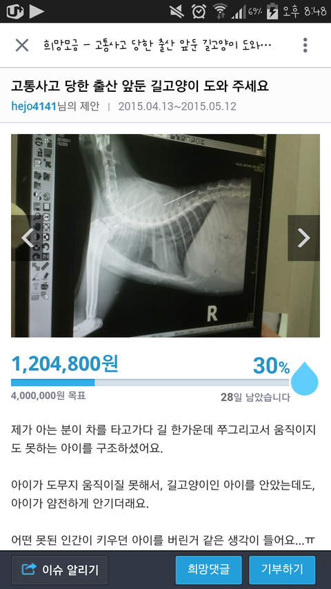 출산을앞둔냥이가 사고당해서이렇게됬어...한번만들어가서 서명과기부부탁해 고양이키우는집사로써 너무안타깝다...