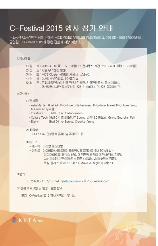 ->문화 Culture, 콘텐츠 Contents, 컨벤션 Convention, 융합 Convergence :culture-art-technology