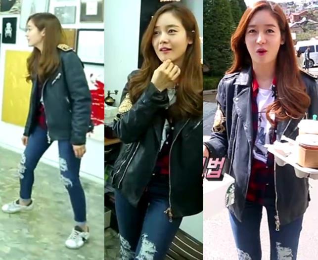 이언니 계속보니까 상의는 연분홍 자켓에 트렌치에 가죽자켓에 계속 바뀌는데