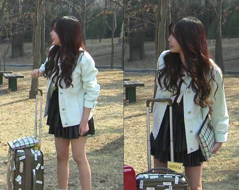 클러치백에 커다란 캐리어 들고 첫등장 하는데
