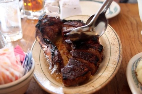 뉴욕 3대 스테이크라고 불리는 브루클린 피터루거 스테이크예요. 수저로 육즙을 떠서 고기 위에 뿌려 촉촉하게 먹으면 맛이 더 배가 돼요.