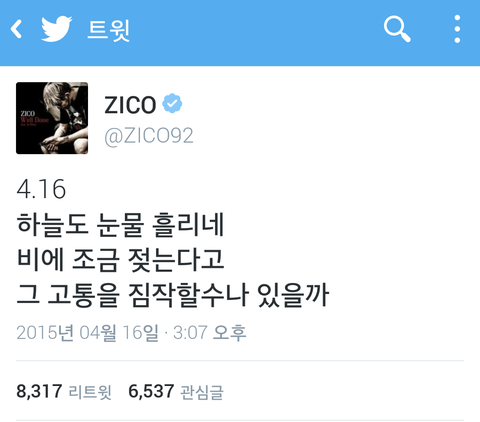 이글보고 작년에 지코가 세월호 희생자 팬찾아가서 한시간 반동안 울었던거 생각난다