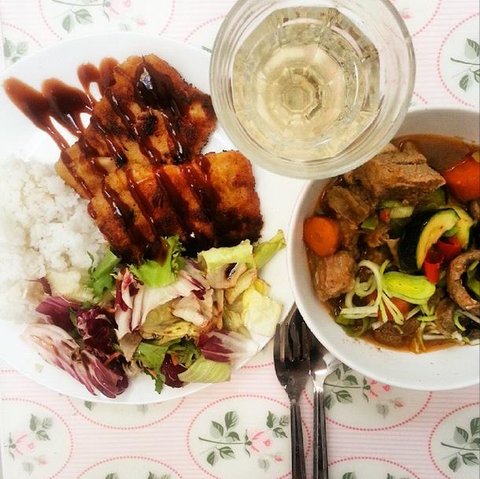 (이 날 갈비찜 먹고 남은걸로 위에 갈비국수만든거에요 ㅎㅎ) 주말이라 와인도 한잔![]()