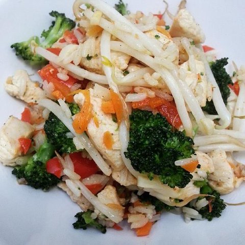 파프리카,닭가슴살,브로컬리,당근넣고 만든 볶음밥이에요!
