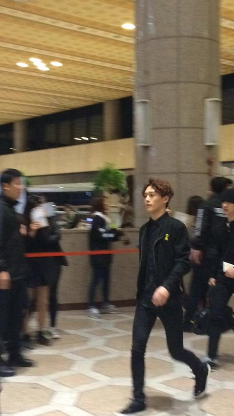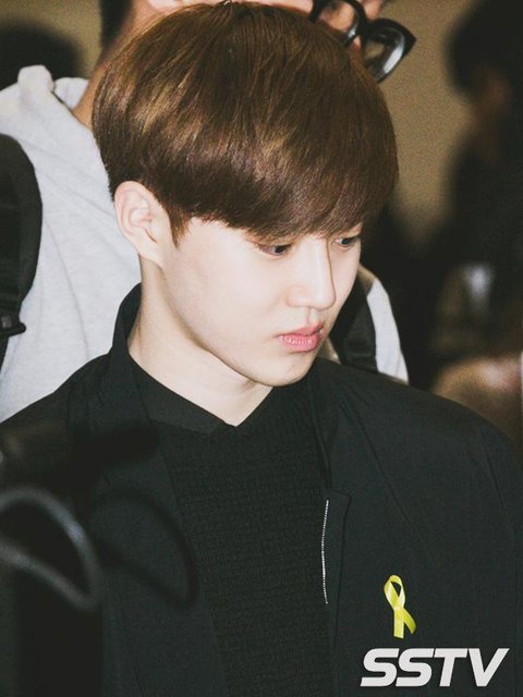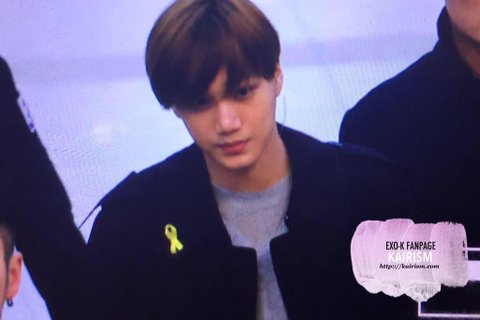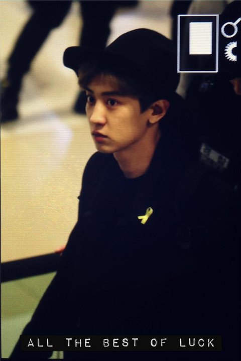 노란 리본을 달고 검은색 계열 옷을 입음 사스가 엑소 ;ㅅ; 얘드랑 사랑한다 오래보자