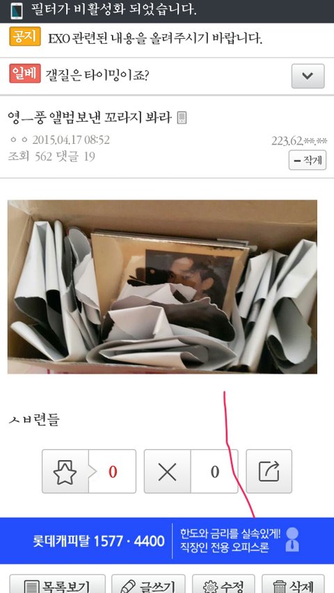 종대 앨범에 니엘 포스터..ㅋㅋ 오 팬으로서 빈정 확 상하는데? 내가 받은것도 아닌데 다 화나네. 엄연한 소비자인데 기만한거 아닌가? 그리고 포스터 왜 찢어 제정신이냐 진짜. 팬들이 보면 얼마나 속상하겠어. 저거 한 장 갖고 싶어서 안달난 사람도 있을텐데.. 영풍ㅋㅋ 진짜 생각없는 대처다
