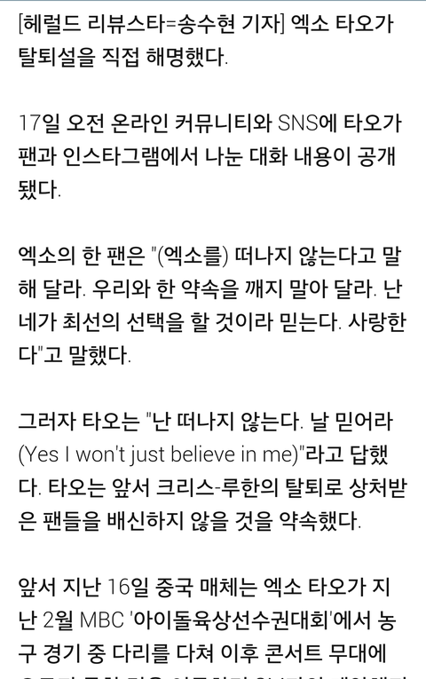 오늘자로 결국 기사났네ㅠㅠㅠㅠ 왜 자꾸 우리 타오 쿠크 부숴뜨리는거야???? 내 타오 좀 그만 괴롭혀ㅠㅠㅠㅠㅠ